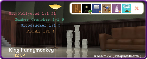 King Funnymonkey stellt sich vor den Trolley Bahnhof und wartet auf andere Mitspieler.