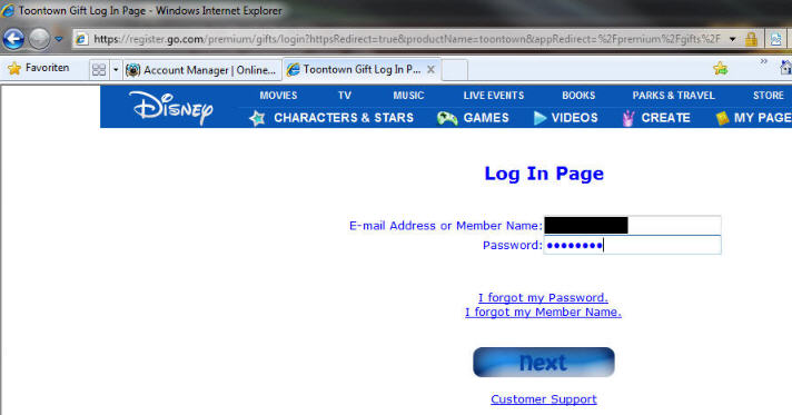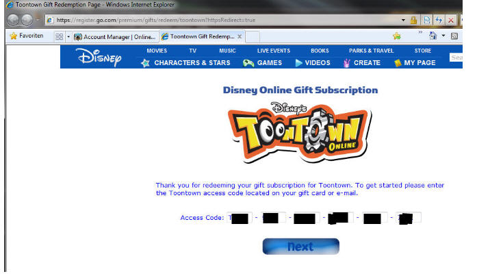 QUOTE Lieber Member Support, Ich habe ein Problem mit dem Einlösen eines gültigen Geschenkcodes, den ein Bekannter von mir gekauft und mit einer Kreditkarte bezahlt hat. Was ist hier das Problem? 1. Ich gehe auf den Link aus der Mail https://register.go.com/premium/gifts/redee...psRedirect=true und gebe den Code ein, siehe Screenshot unten. ![]() (in der Mail steht der ungeschwärzte Code) 2. Auf der nächsten Seite klicke ich auf den Link neben dem roten Pfeil ![]() Dann logge ich mich ein mit meinem Mitgliedsnamen und Passwort ![]() und dann werde ich auf diese Seite umgeleitet: https://register.go.com/premium/gifts/login...26giftId%3DTG06 aber das resultiert in einem HTTP Error 500, siehe unten ![]() Okay fein, ich dachte ich warte bis zum nächsten Tag. Aber heute ist schon der dritte Tag seitdem ich es versuchte, und es kommt immer noch dieser Fehler! Auch wenn ich versuche es unter einem neuen Usernamen in Schritt 2 oben zu registrieren, kommt immer noch der Fehler wie folgt: ![]() Also bitte Hilfe! Die Geschenk-Gutschrift soll gehen auf die User ID XXXXX, Email YYYYY freundliche Grüße, Fräulein Trixie Wie wir dann festgestellt haben, Sammi, hattest Du auch eine ungültige Email Adresse in deinem Account bei Toontown hinterlegt. Das geht natürlich gar nicht! Aber es erklärt vermutlich nicht den obigen Fehler, trotzdem ist es möglich, dass dein Spielkonto durch die falsche Angabe mit der Emailadresse sowieso einen Fehler beinhaltet. Auch wenn wir das inzwischen behoben haben, funktioniert es ja weiterhin nicht. Wir müssen jetzt warten, bis Disney das repariert, und antwortet. -------------------- |