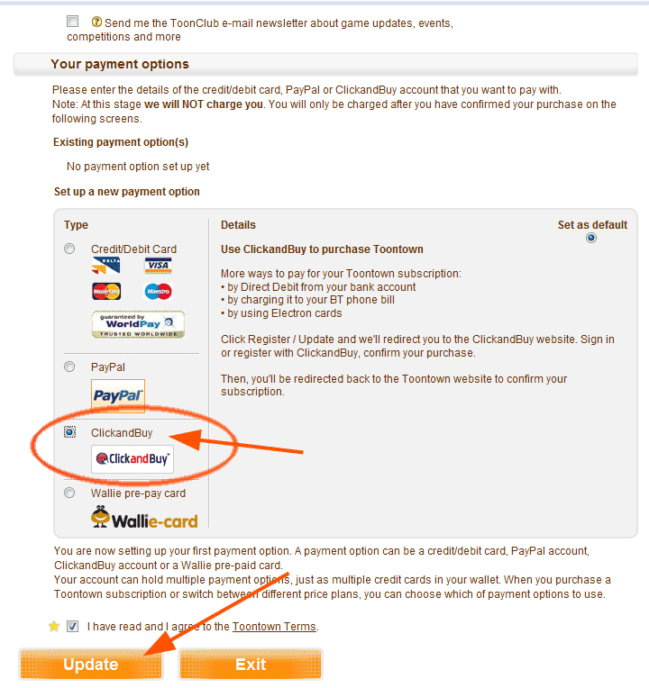 QUOTE kannst du mir in einer reihenfolge erklären wie man toontown mit click and buy bezahlt