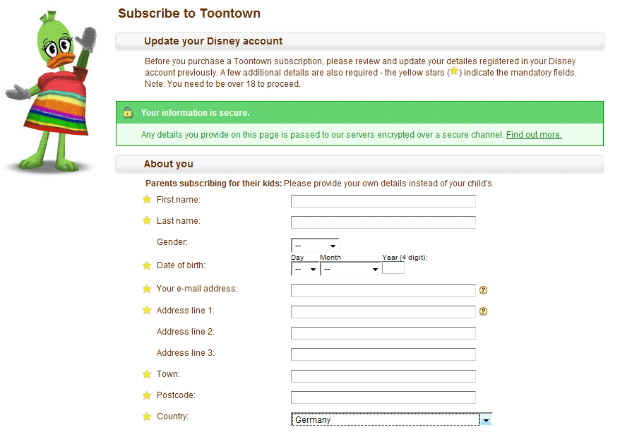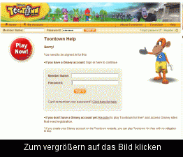 Da Du aber noch gar nicht spielen konntest vermute ich, dass du einen Tippfehler in der Eingabe in "My Account" gemacht hast, oder so etwas in der Art. Mein Tipp, auch wenn es umständlich ist: Kündige den Toontown-Account nochmal total und mach die Buchung von Anfang an noch einmal. Gib das Click und Buy Konto neu ein, wähle nocheinmal den gewünschten Abozeitraum und speichere das. Was eventuell notwendig sein kann, das ist, dass Du die Passwörter (beide, Eltern- und Kinderpasswort) ändern musst um den Account vom Trial-Modus in den Vip-Modus zu bekommen. Ich drück Dir die Daumen. P.S. Wenn Du im Chat Fragen stellst, dann wäre es nett, wenn Du hin und wieder etwas warten könntest bis wir antworten. Wir sitzen auch nicht rund um die Uhr am PC, manchmal dauert es halt einige Zeit bis wir die Fragen lesen und darauf eingehen können. -------------------- |